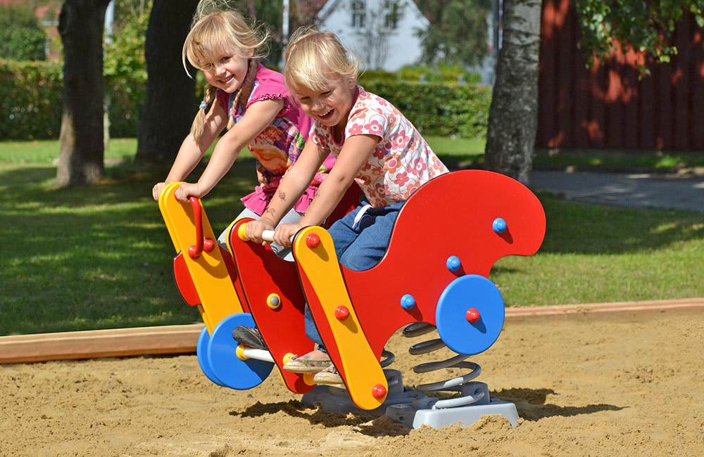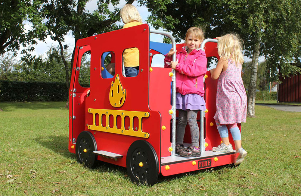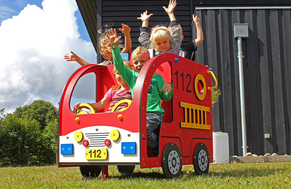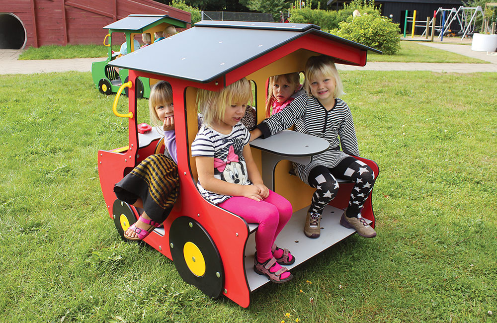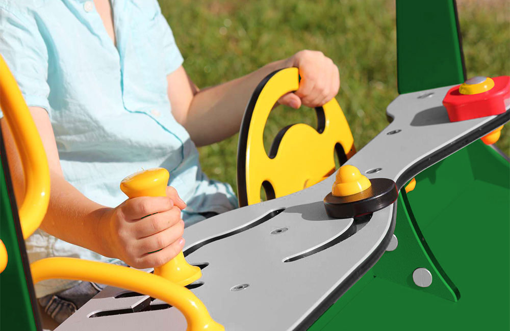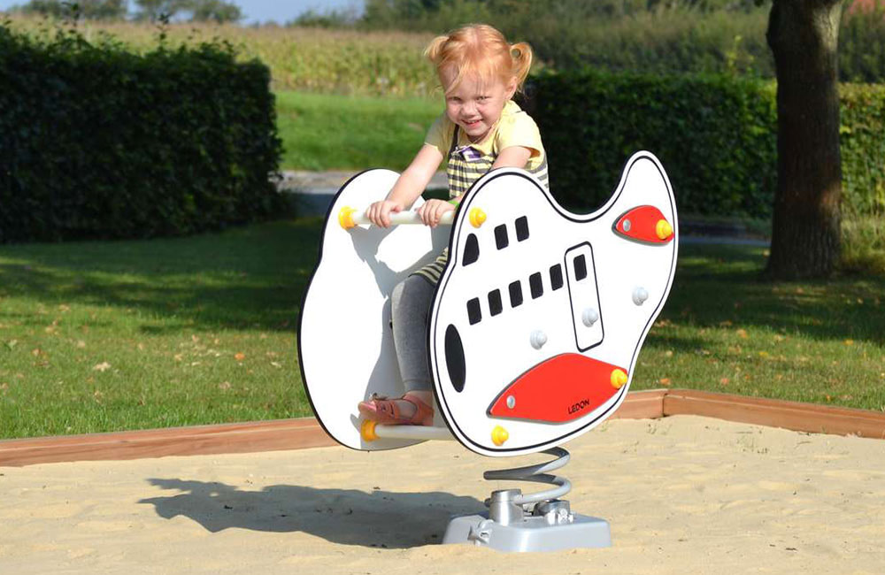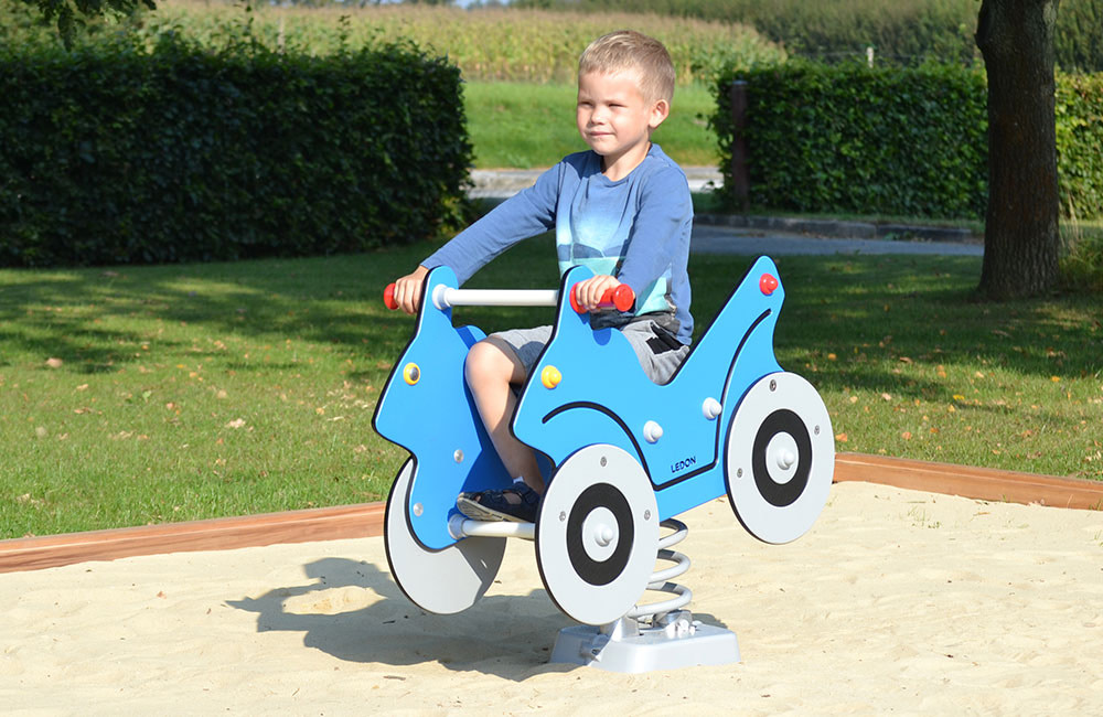 Much of the play equipment from LEDON Originals is based on everyday experiences. The playhouses and springers in the series are inspired by daily life and the real world, such as the green tractor, the fuel pump, the jumbo plane etc.Through role-playing, children can therefore live out everyday situations from life as it unfolds around them: the farmer on his tractor, a fire that needs to be put out by the fire engine, or a ride on a motorbike.