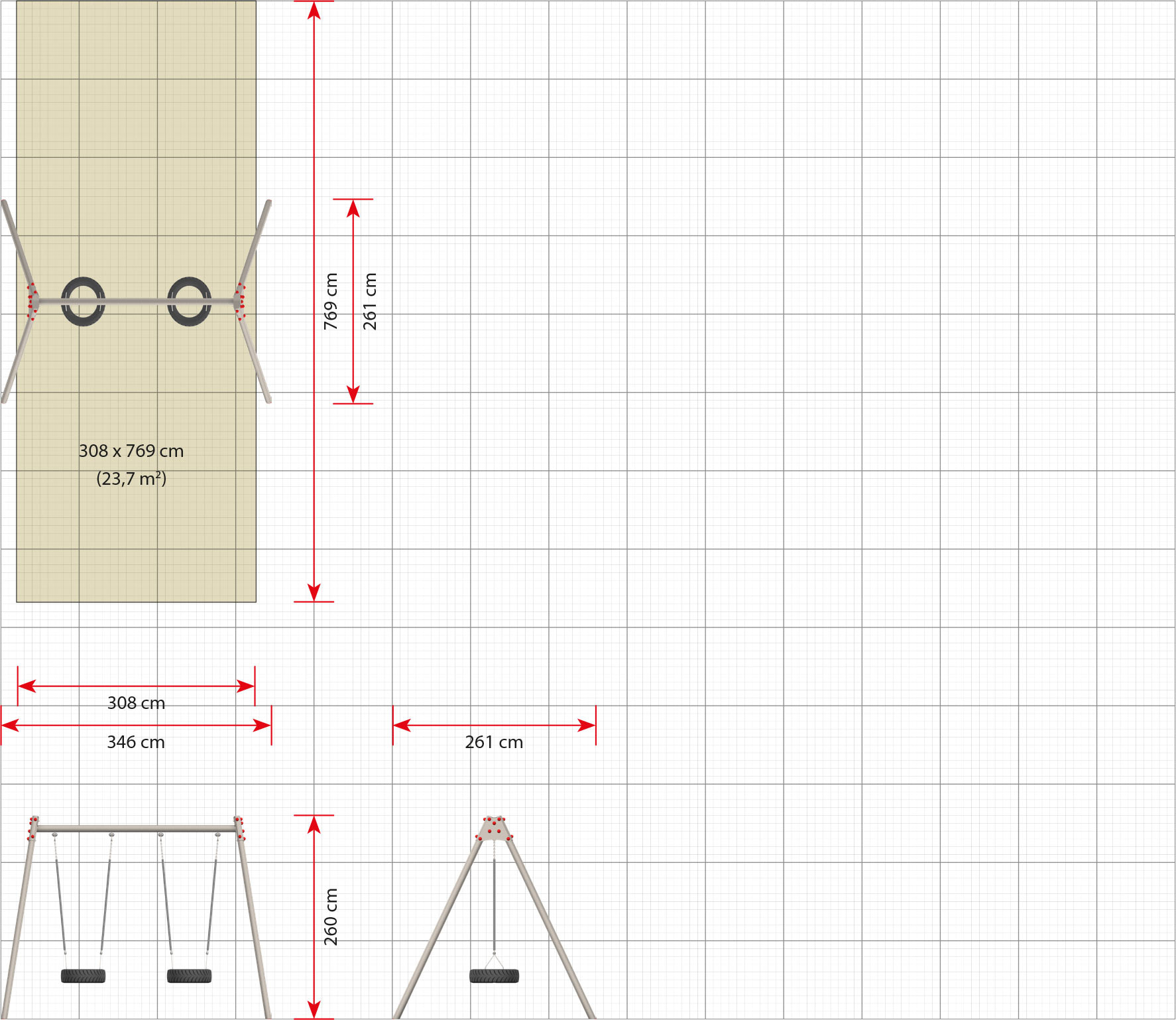 Area requirement incl. safety distances (LxW)346 x 769 cm