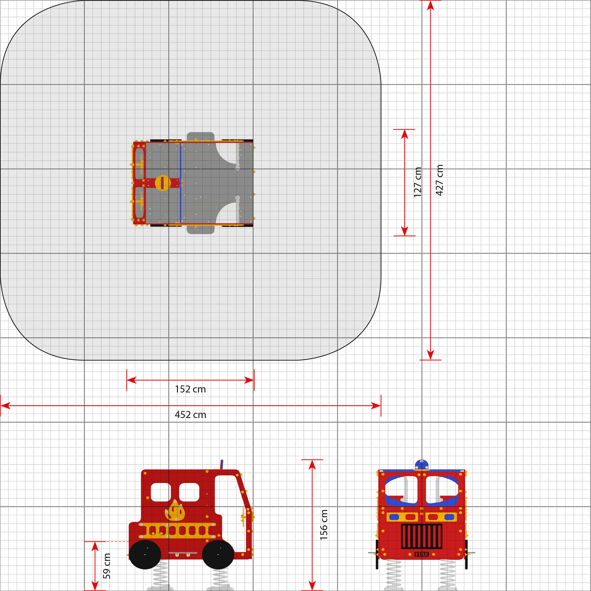 Like all our other playhouses, the fire engine on springs can be installed directly on grass, and is made of durable and low-maintenance materials.