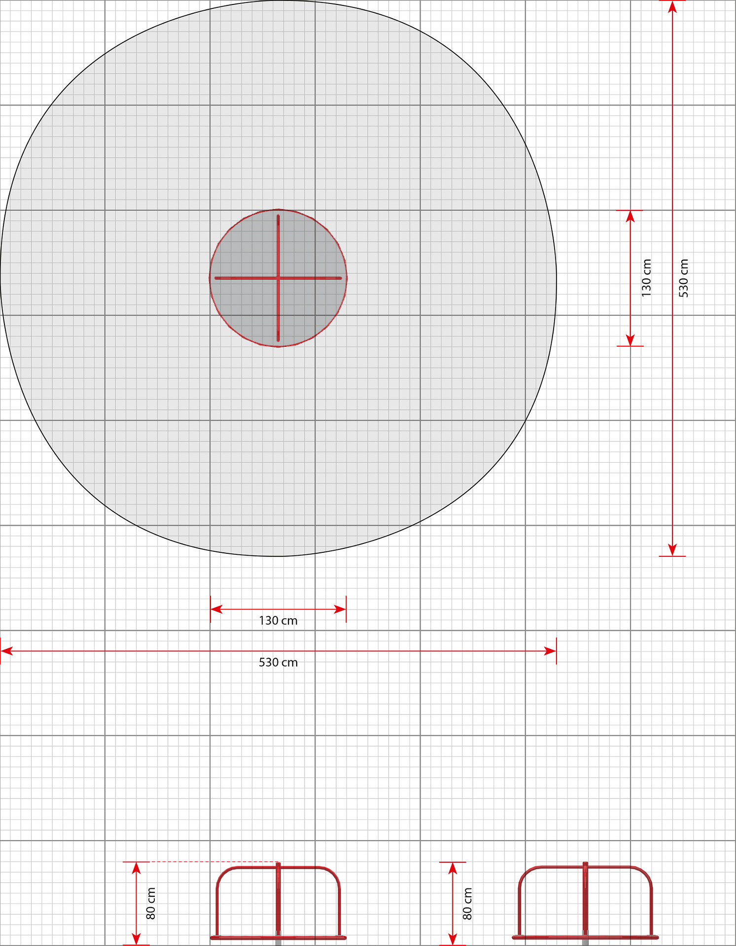 Area requirement incl. safety distances (LxW)530 x 530 cm