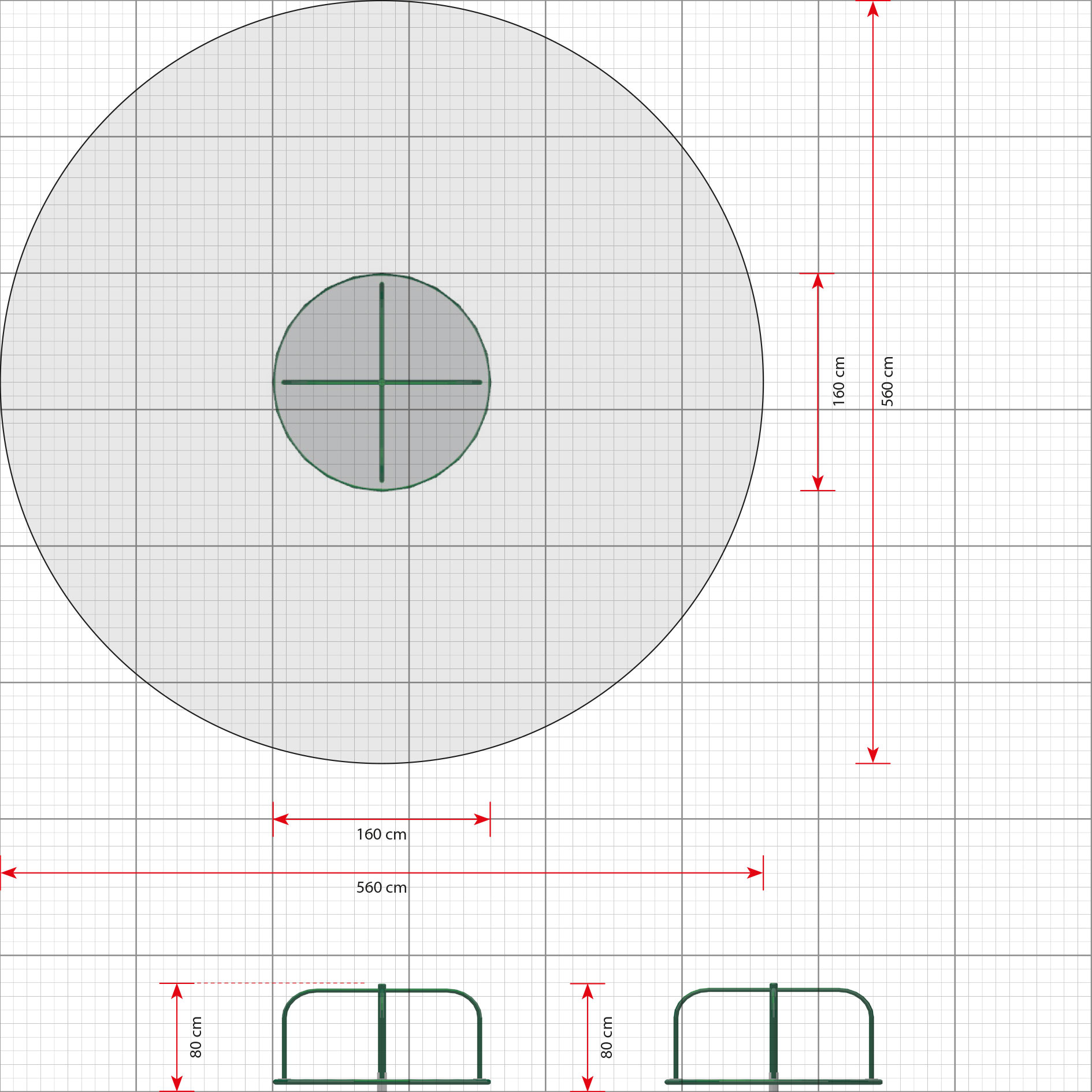 Area requirement incl. safety distances (LxW)560 x 560 cm
