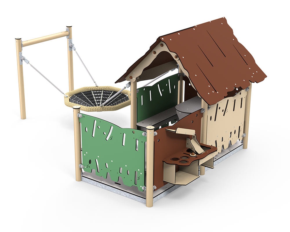 Lilo is also the only playhouse to feature a bird’s nest swing – or sensory swing, as it is also known. The bird’s nest is supported on both sides, and consequently it does not function as a real swing, but rather as a gently moving and rocking cosy corner, where secrets and tall tales can be told. The bird’s nest is particularly popular with younger children. When children lie or sit in the bird’s nest when it’s moving, it stimulates the vestibular sense inside the child’s inner ear. The vestibular sense registers the position of the head in relation to gravity – up, down, right, left etc. – and thus helps the child’s sense of balance.