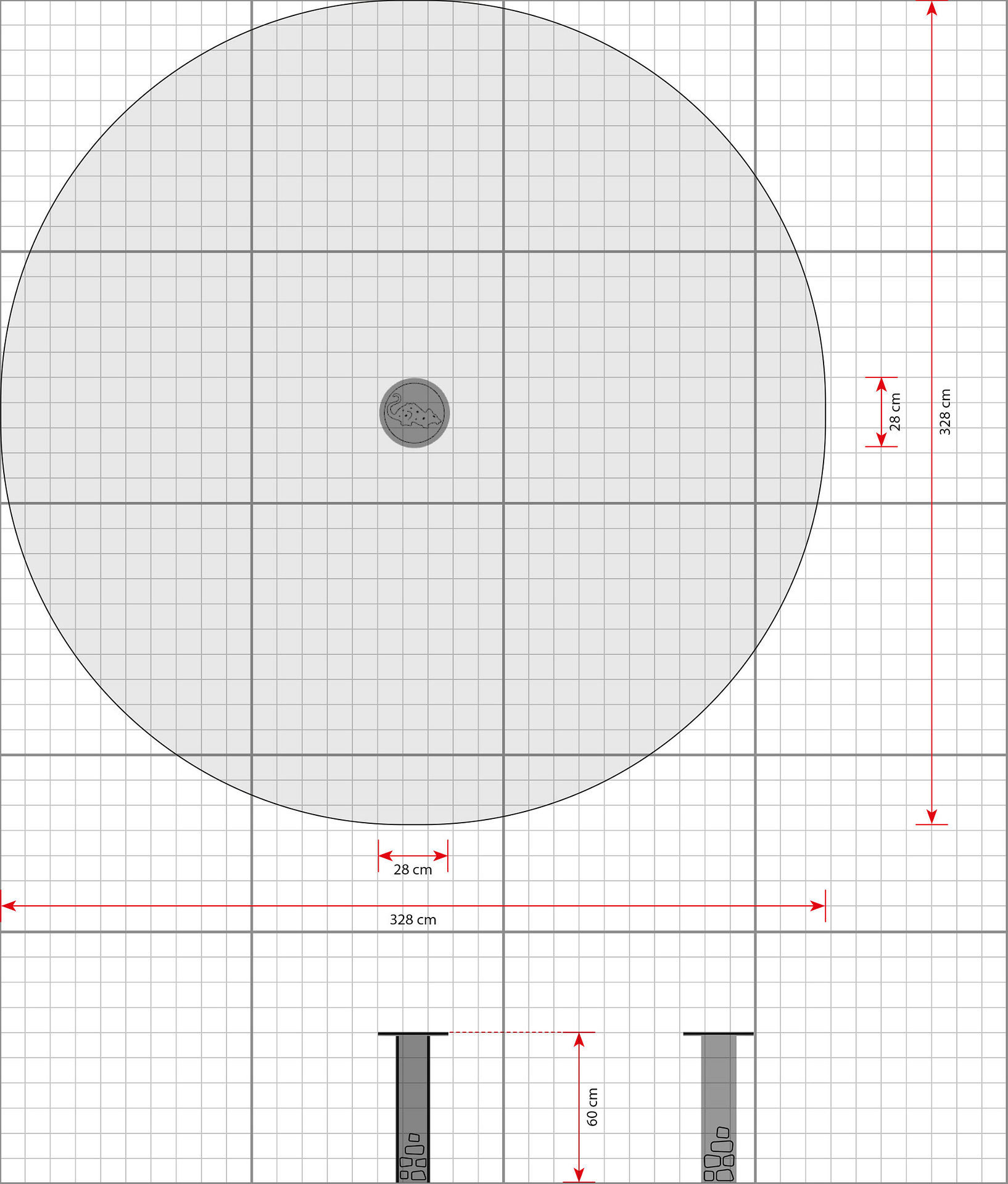 Area requirement incl. safety distances (LxW)328 x 328 cm