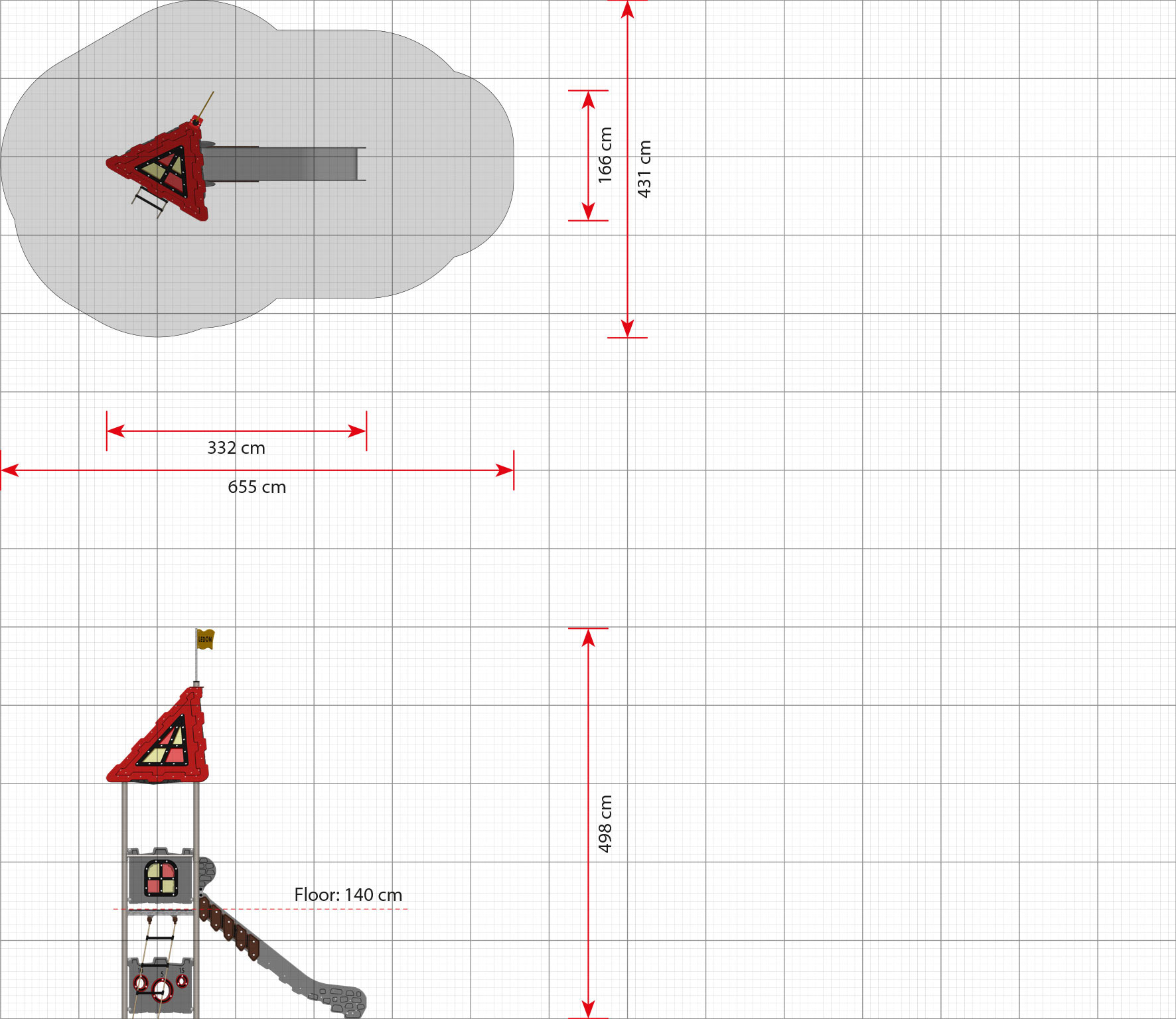 The play equipment is designed with minimal space requirements, and therefore fits easily into most playgrounds. If the play equipment requires a safety surface, the price for this will consequently be lower.