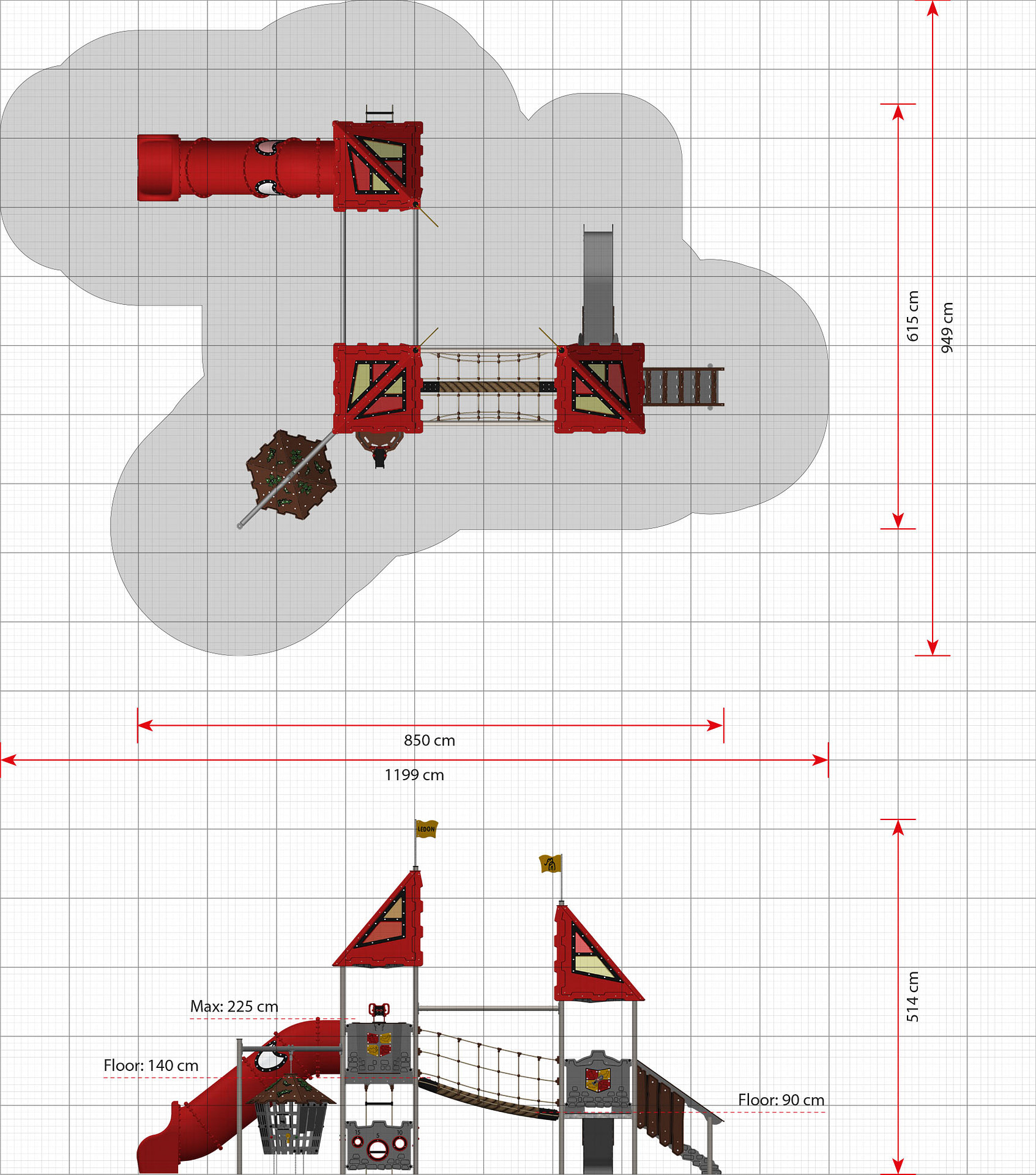 The innovative design of the play systems sparks children’s curiosity from a distance with pointed towers and ruby-red roofs.