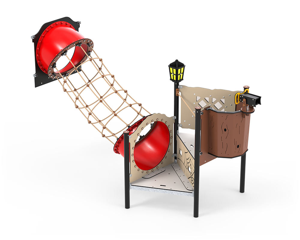The Pirates series includes a rope tunnel for your pirate ship. The rope tunnel is an extra fun way of accessing the pirate ship’s top aft deck. The rope tunnel requires children to use cross-body movements to move through it in either direction. This stimulates neural activity between both sides of the brain, which helps them to learn to read and write. In addition to the climbing net, Cathrine is equipped with a small play tower with a lookout barrel, where you will find the movable telescope and the lantern, which lights up when the sun shines through it.