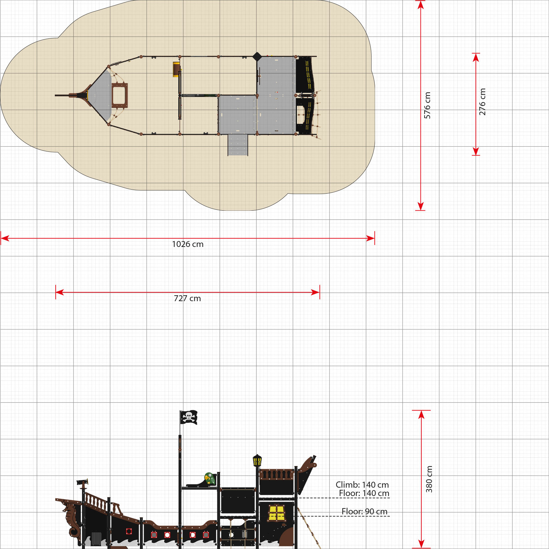 The big pirate ships feature two aft decks, 90 cm and 140 cm high. These decks are accessed via the rope ladder or the climbing wall panel, or by scaling the large climbing net at the stern. The large climbing net is very popular with children because it is great fun, but it is also good for their health and development. When children perform cross-body movements, it stimulates neural activity between both sides of the brain. The better the two sides of the brain work together, the easier it is to learn to read and write. The upper aft deck has a lantern, which lights up in bright sunshine when light passes through the shockproof polycarbonate. You can read more about the four zones on the pirate ships and all the play activities here.