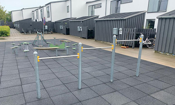 DjursBO, a housing association in Ebeltoft, Jutland, has a new and exciting playground on one of their estates. The playground is located between two rows of houses, and DjursBO therefore had some specific wishes regarding its design. Having found in the past that the noise of children playing on high play equipment would tend to echo and create annoying reverberations, they wanted a playground that was basically lower.