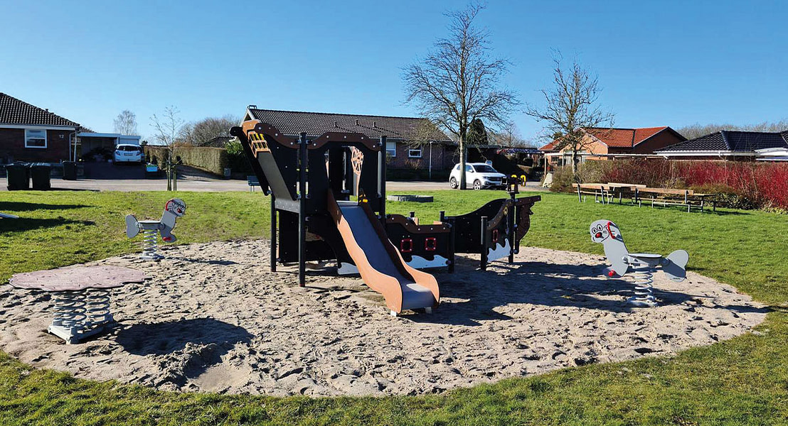 The homeowners’ association Blaabærvej had fallen in love with our pirate ships from the series LEDON Pirates. Our ships come in a large selection of sizes, and therefore the homeowners’ association could easily find one that fit into their budget and area. The height and size of the ship was crucial as they had to ensure that there was no view into the surrounding gardens. And at the same time, they wanted to preserve an area of the lawn for playing football. Therefore, the choice fell on the model Nathalie, which is one of our medium-sized ships.