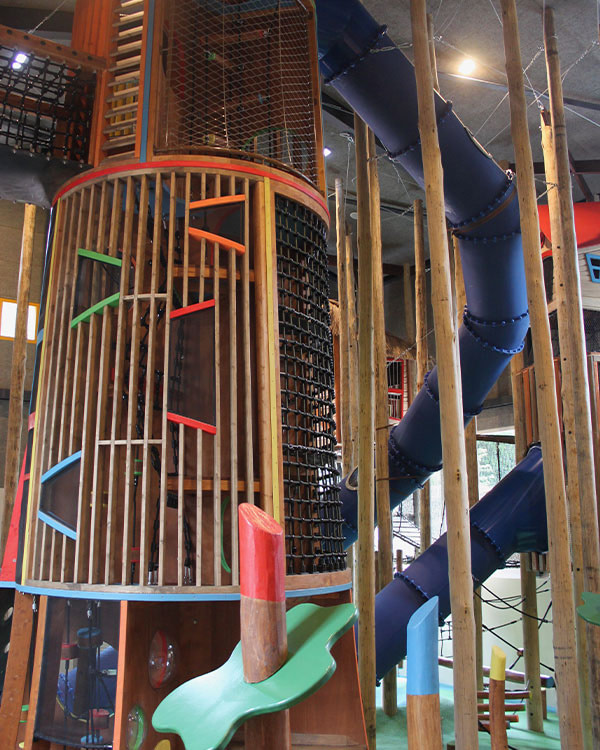 Camping De Berenkuil is a child friendly campsite in Grolloo, the Netherlands. The area has no less than 25 playgrounds besides the big indoor playground. The indoor playground offers countless hours of fun high up in the large net, wooden cabins, and climbing courses. The way down from the wooden cabins is via one of the big blue tube slides from LEDON.