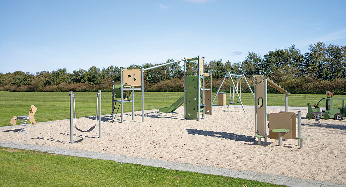 The playground primarily showcases equipment from LEDON’s Basic series, with additional features from the Explore theme world, such as the offroader. This combination shows the versatility of LEDON’s play equipment and how elements from different series can work together seamlessly in a single playground.