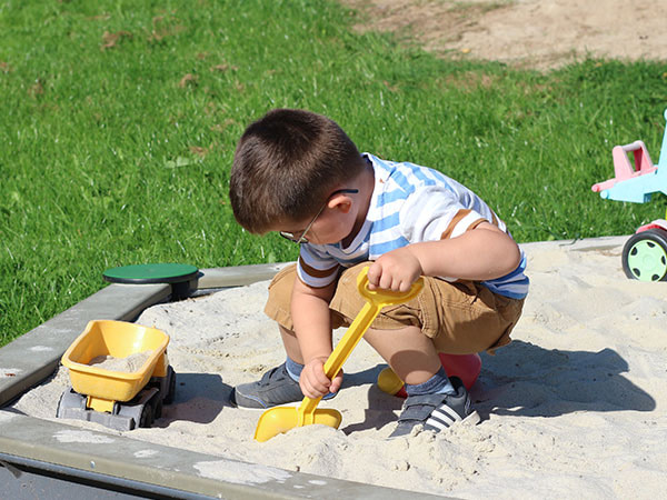 Unstructured play is therefore important for children learning to think independently and outside the box. In the sandbox, they can allow their imagination to run wild without being restricted by goals or instructions – the sand can become anything they want. The sandbox is a safe and well-defined space where parents or staff can step back and leave the children to play by themselves.