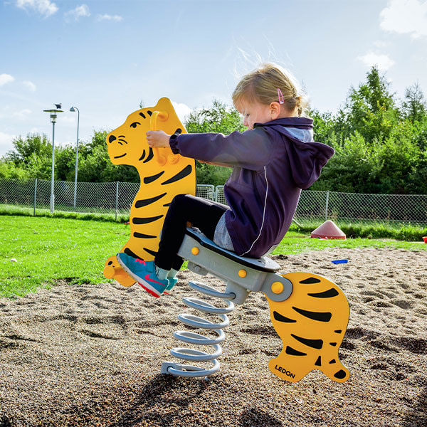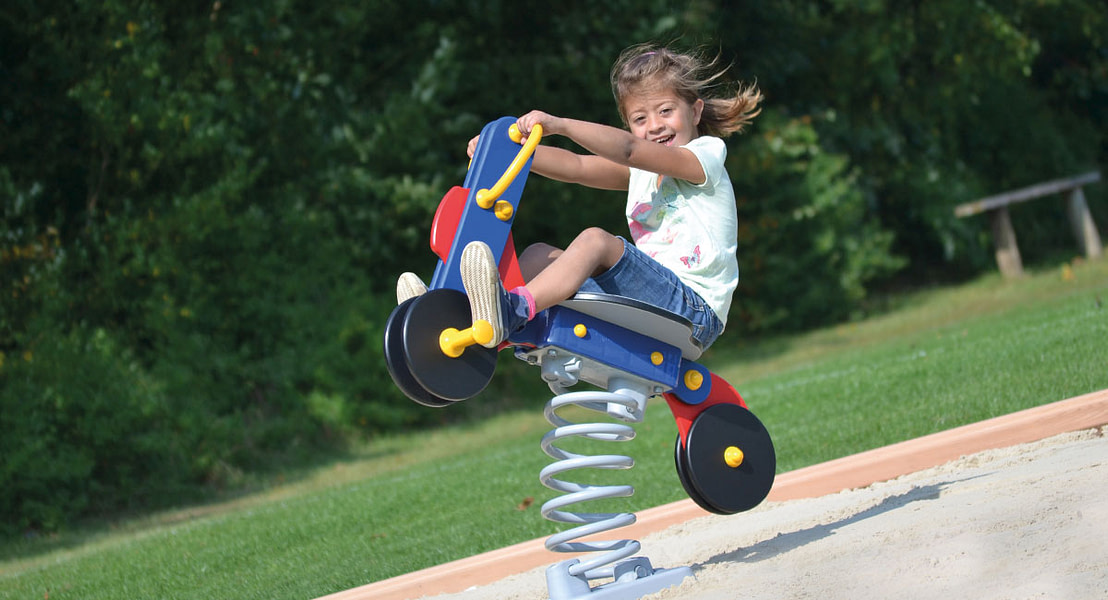 When deciding where to position a springer in the playground, a number of factors need to be taken into account to achieve the best possible layout. Like slides and swings, springers see a lot of fast-moving play and high noise levels. It is usually a good idea to group this kind of equipment together and at a distance from playhouses and sandboxes where children need peace and quiet to concentrate on what they are doing.
