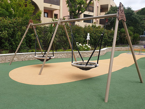 There are several things to think about before deciding on a new swing. For example, if the swing is for a public playground – for example a housing or homeowners’ association or an institution – it must meet the requirements of the European safety standard EN 1176.