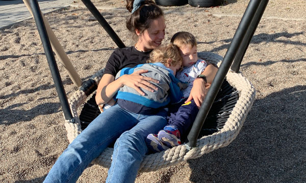 A ride on a swing stimulates the vestibular system, a small sensory system in the inner ear. The vestibular system continually sends signals to the brain about the position of the head in relation to the body and gravity, and in this way children develop their sense of balance and a solid foundation for their motor development.